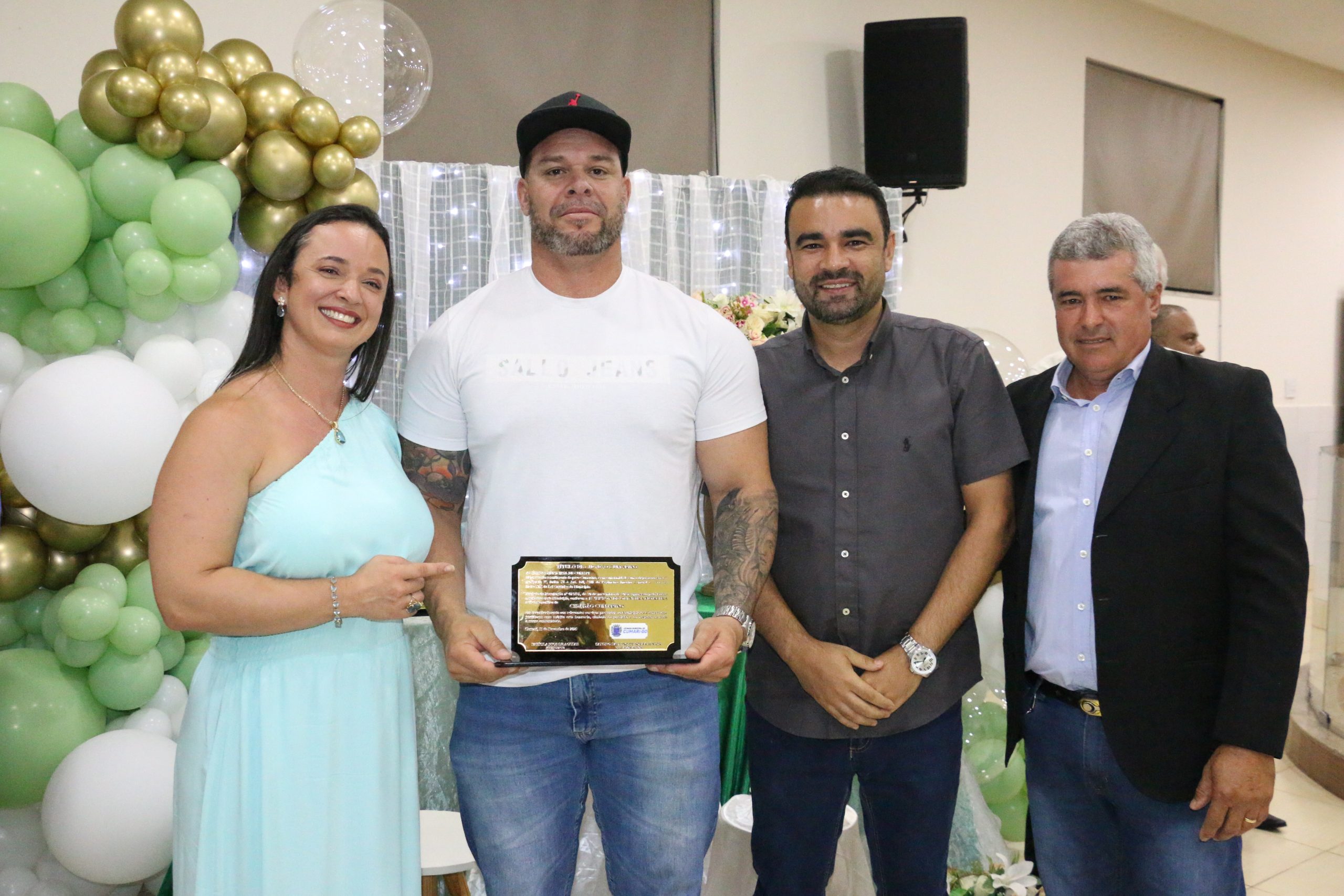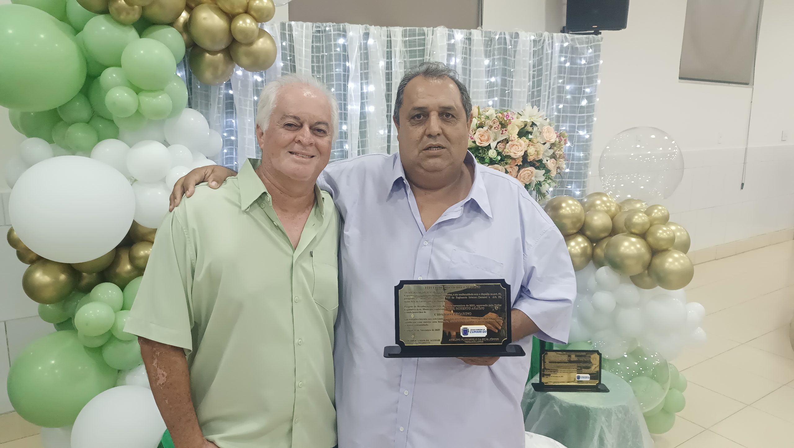 Além da homenagem ao ex-prefeito e médico, a Câmara promoveu a entrega de Títulos de Cidadão Cumarino a diversas personalidades que contribuem significativamente para o desenvolvimento social, econômico e humano do município. Foram homenageados moradores antigos, empresários, profissionais da saúde, do esporte e da educação, entre eles Luiz, popular Luiz Porcão, de Goiandira, reconhecido pelo trabalho voluntário no apoio a pacientes de Cumari em tratamento contra o câncer na cidade de Barretos (SP).