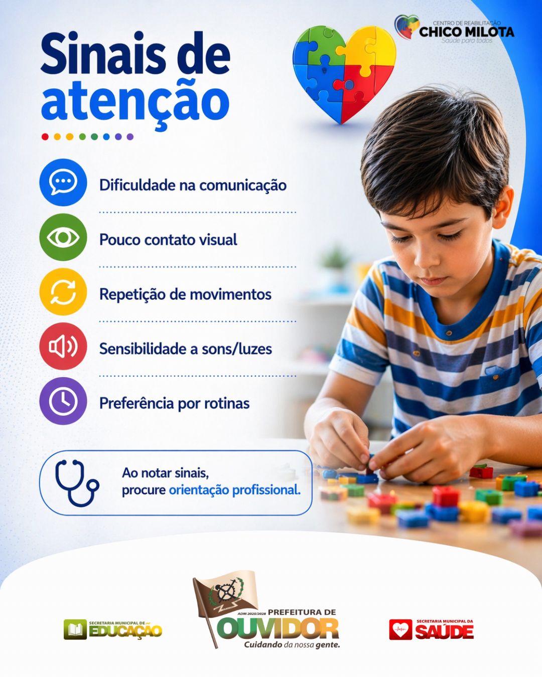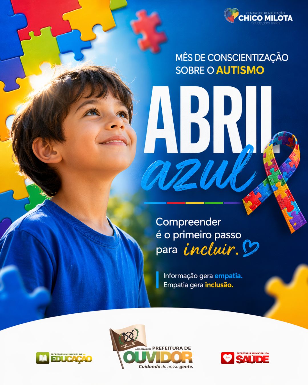 A ação é integrada pela Secretaria Municipal de Educação e pela Secretaria Municipal de Saúde, com apoio da Administração Municipal de Ouvidor, que reforçam o compromisso público de promover inclusão e acesso a informações confiáveis sobre o TEA.