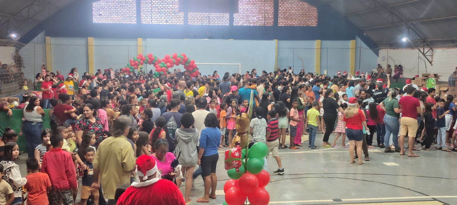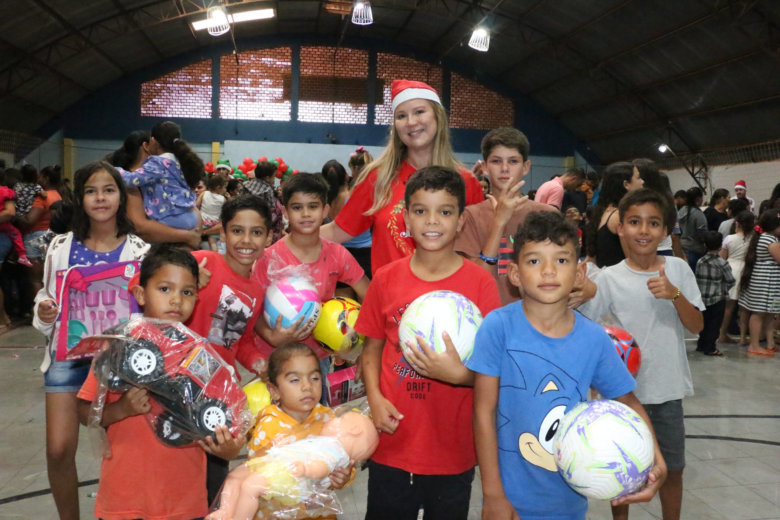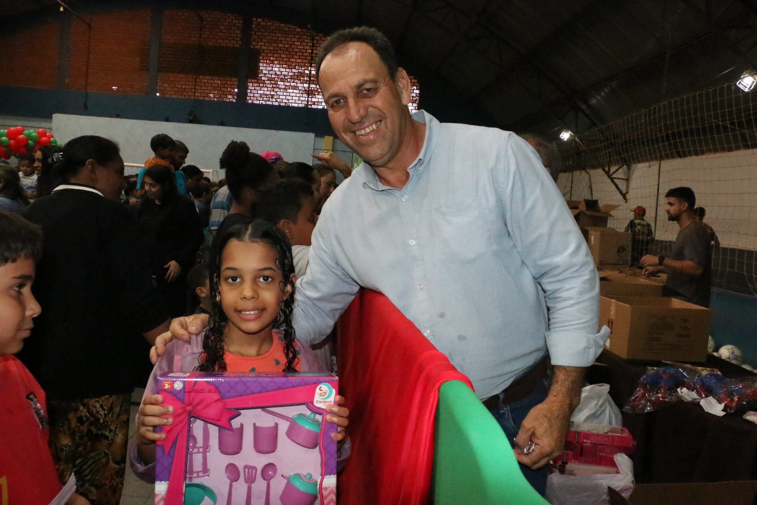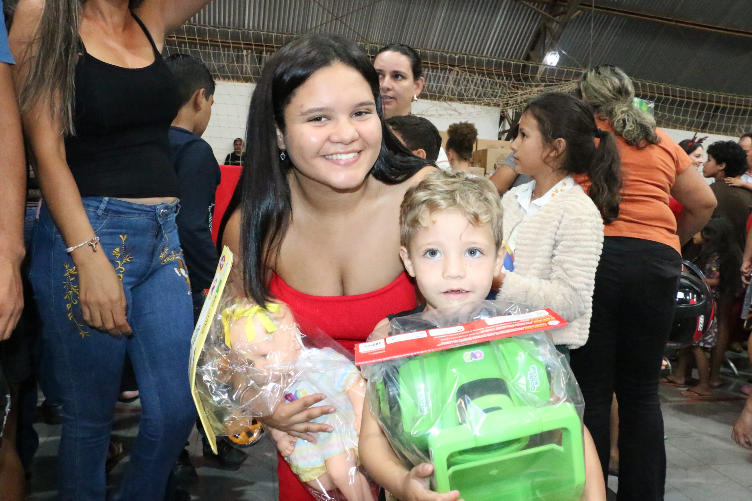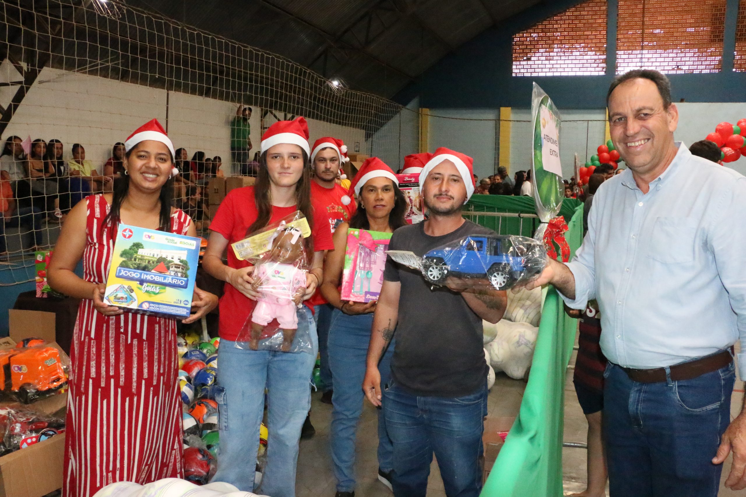 Na tarde desta segunda-feira, 8 de dezembro, Campo Alegre de Goiás ganhou um brilho especial com a acolhida de crianças e familiares para a entrega de brinquedos, resultado de uma parceria entre a Prefeitura Municipal e a Organização das Voluntárias de Goiás (OVG). A ação foi coordenada pela Prefeitura e secretaria municipal de Assistência Social e ocorreu no ginásio de esportes da cidade, beneficiando mais de 2 mil crianças e adolescentes matriculados ou não na rede de ensino.