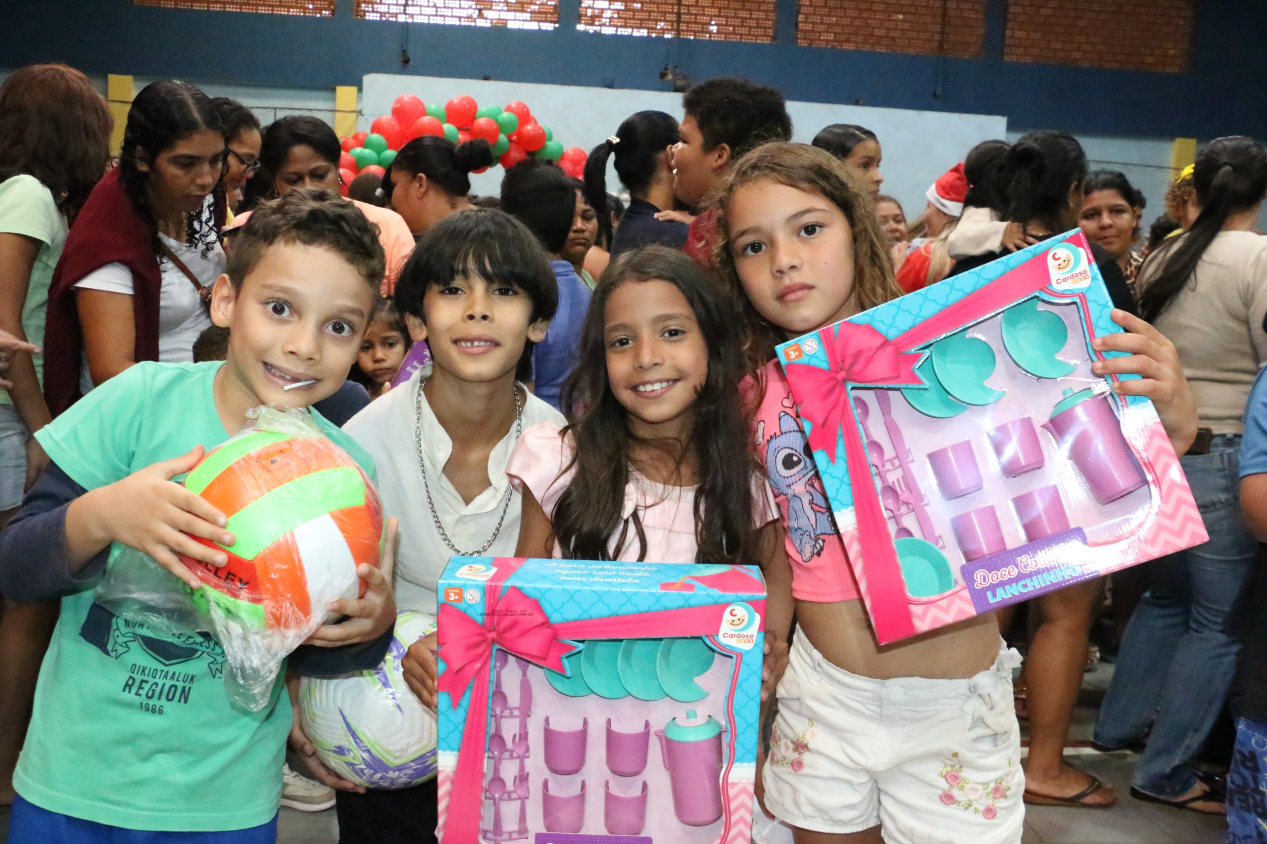 Entre os itens distribuídos estavam brinquedos esportivos — bola de futebol e bola de vôlei; itens de incentivo à imaginação, como caminhão caçamba; bonecas Morena (Linda) e Loira (Benzinho); além de jogos e kits, como Chá/Café e o Banco Imobiliário. A iniciativa reforça a importância de ações sociais neste período do ano, que envolve celebração, solidariedade e convivência familiar.