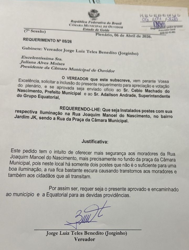 Notas do registro: Os documentos apresentados durante a sessão, incluindo os requerimentos e o Projeto de Lei nº 006/2026, impressionam pela clareza de objetivos e pela preocupação com a qualidade de vida dos moradores. A prefeitura, por sua vez, aguarda a tramitação dos textos no ordenamento legal, com a devida abertura para participação popular e transparência na gestão pública.